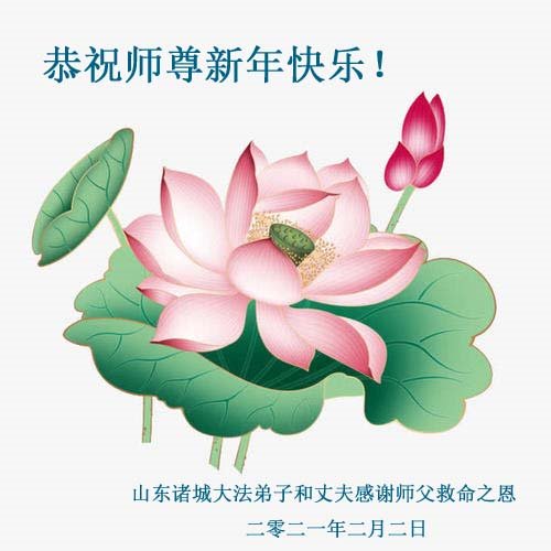 师父您辛苦啦!我们想您啊!叩拜师尊!献诗一首表寸心: 辛丑又一年 弟子正念添 精進三件事 梅莲春满园 师尊洪恩涌 正法新纪元 山东省潍坊市诸城市大法弟子恭祝师父新年快乐!