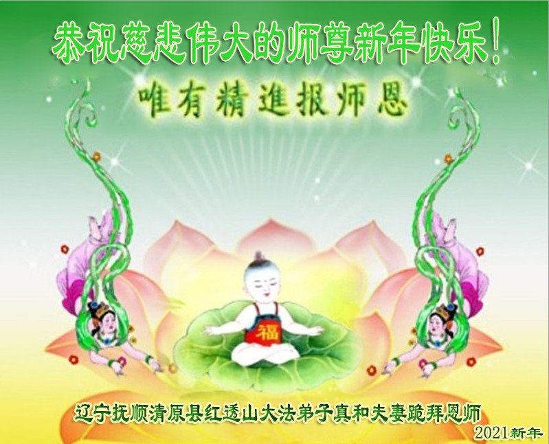 感恩师尊的慈悲苦度,师尊真的是洪恩浩荡啊!在这血雨腥风,邪恶疯狂迫害大法弟子的二十一年中,如果没有师尊的慈悲保护,弟子怎能走到今天?用尽任何语言也难倾诉弟子感恩师尊之心。 在新的一年里,弟子要精進再精進。只有做好三件事,才能修好自己,兑现誓约,完成史前大愿,随师回到天国美好家园! 辽宁省营口市一大法弟子叩拜师尊 二零二一年一月二十七日 辽宁抚顺清原县红透山大法弟子恭祝慈悲伟大的师尊新年快乐!