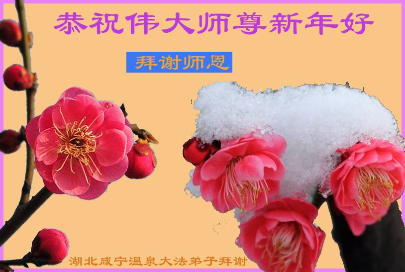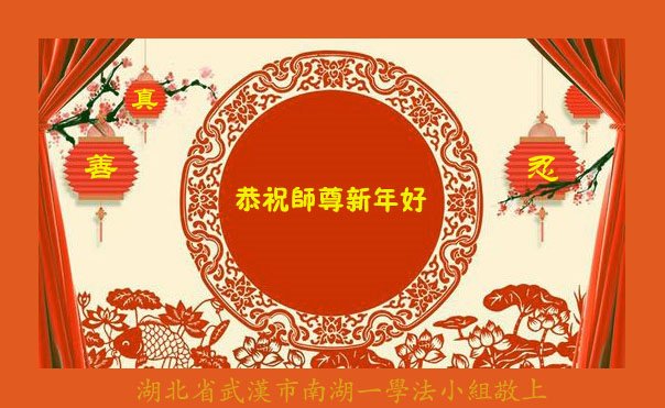师父新年好!我们会一直做好大法弟子应该做的事,让世人明白真相得救度。 湖北省天门市皂市镇全体大法弟子恭祝师父新年好!