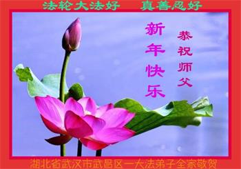 师父您好! 借明慧网的一角,带上我们大法弟子衷心的祝愿,祝愿我们慈悲伟大的师父新年快乐! 天门市全体大法弟子向师父拜年! 湖北省武汉市武昌区一大法弟子全家恭祝慈悲伟大的师父新年快乐!