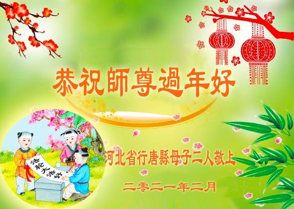 河北石家庄一大法弟子全家恭祝师尊新年好!