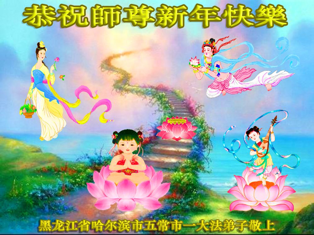 师尊过年好!弟子跪拜! 这一年中弟子又有了较大的提高。弟子感恩法给弟子的指导,离开法弟子寸步难行,弟子要多学法、学好法,做好三件事,不负师尊苦度!感恩师尊! 黑龙江省哈尔滨市五常市一大法弟子恭祝师尊过年好!