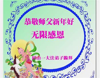 师父啊!眉山一大法弟子想念您,我虽然没有参加过您办的讲法班,也没亲眼见过您。但是我能感受到您每时每刻都在看护着我,保护着我。在我修炼的二十六年中,经历了多少坎坷,经历了多少曲折,每走一步都是您为弟子的巨大付出和慈悲保护,弟子无法用语言来形容师父的慈悲伟大,弟子只有真正按照师父的要求修好自己,兑现誓约,跟师父走到最后。 让师父欣慰! 四川省资阳市安岳县两夫妇大法弟子恭祝慈悲伟大的师父过年好!