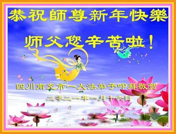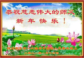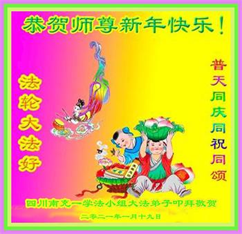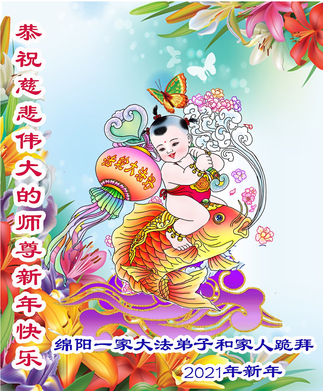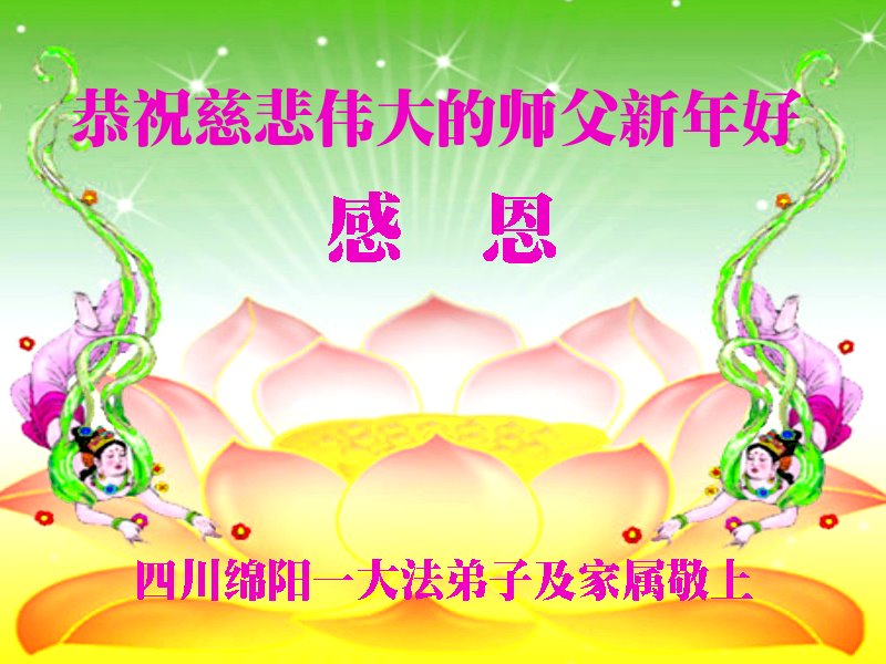 四川省遂宁市城北一老年大法弟子敬上 四川省绵阳市全体大法弟子恭祝慈悲伟大的师尊新年快乐!