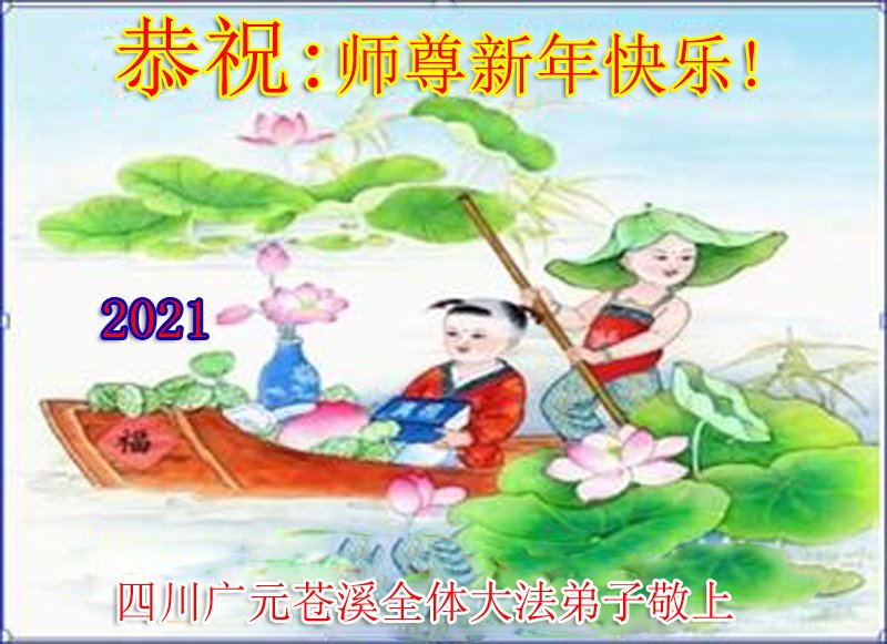 在新年到来之际,慈悲伟大的师父,自贡市全体大法弟子给您拜年啦!感谢您的慈悲救度,您的佛恩浩荡用语言无法表达,弟子们让您操心啦!师父您辛苦啦!新的一年,弟子一定多学法,在法上认识法,同化大法,做好三件事。圆满随师还。 四川省自贡市全体大法弟子敬上 2021年1月23日 四川广元苍溪全体大法弟子恭祝慈悲伟大的师尊新年快乐!