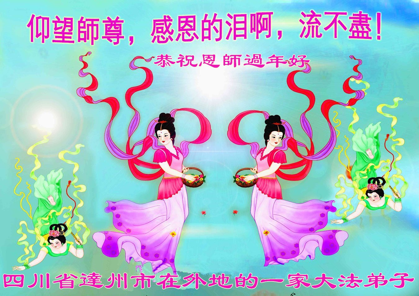 四川省达州市在外地的一家大法弟子恭祝恩师过年好!