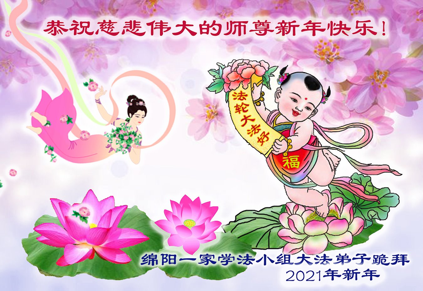 四川省绵阳市一家学法小组大法弟子恭祝慈悲伟大的师尊新年快乐!