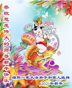 中国新年即将到来,弟子们想念您!您为我们付出太多太多。我们大法弟子一定抓紧时间入心学法,听师父的话,坚信师父,坚信大法,以法为师,努力做好三件事。谢谢师父的慈悲苦度!我们不辜负您的期望与重托,“三件事”是我们的使命,“正法时期大法弟子”是我们的荣耀!在新的一年里我们要学好法、同化法,谨遵师父教诲:修好自己,抓紧救度那些可救度的生命,完成自己的使命,不辜负师父的慈悲救度。 四川广元苍溪全体大法弟子敬上 2021年1月23日 四川省达州市在外地的大法弟子恭祝慈悲伟大的恩师过年好!