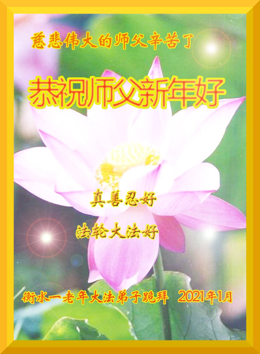 无量大穹和众生的安危仰赖师尊慈悲救度,师尊的浩荡佛恩有谁能说得清感恩得了!我们万生有幸成为师父的弟子,无比的荣耀与责任都在做好三件事精進修炼中。 河北衡水一老年大法弟子恭祝慈悲伟大的师尊新年快乐!
