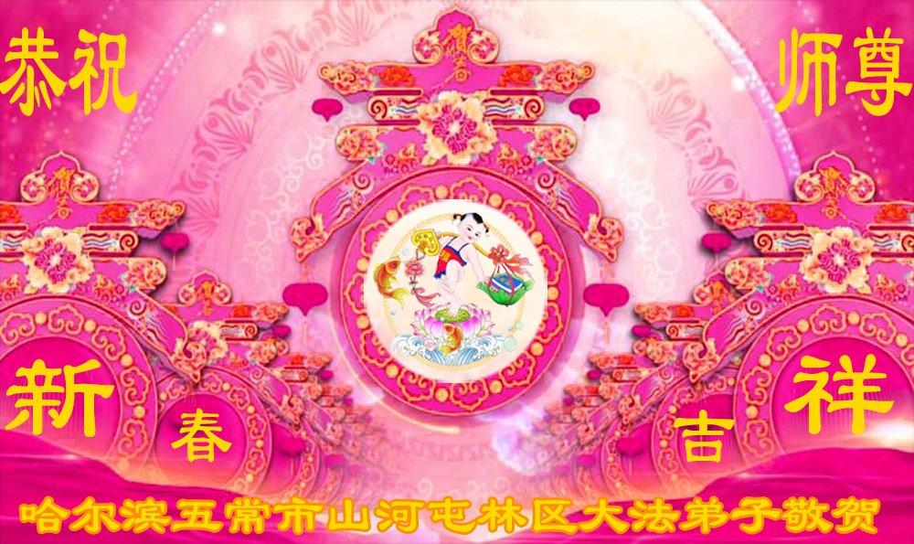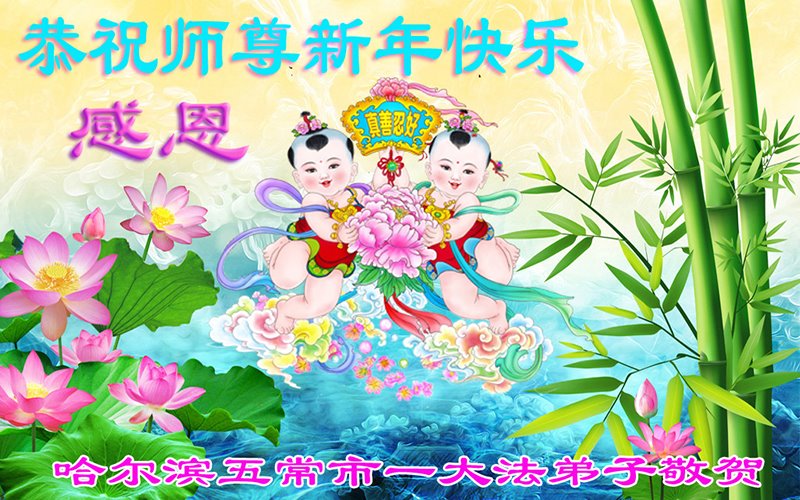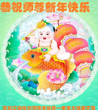 弟子们一定精進实修,做好三件事,不辜负师尊慈悲苦度。一家三口大法弟子们跪谢师尊! 黑龙江哈尔滨一老年大法弟子恭祝师尊中国新年快乐!