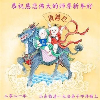 尊敬的师父好!祝师父新年快乐! 我是师父的弟子,在新的一年里,向内找自己的不足,我要多学法,重视学法,修好自己,做好三件事。请师父加持,救度更多的世人。助师正法,坚定的维护法,跟上师父的正法進程。 山东临清大法弟子 二零二一年元月二十五日 山东省聊城市临清市大法弟子恭祝师父新年快乐!