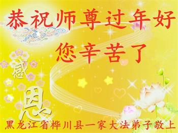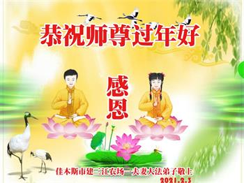 佳木斯市建三江一夫妻大法弟子恭祝师尊过年好! 师父您辛苦了! 佳木斯市建三江一夫妻大法弟子敬上 黑龙江省佳木斯市桦川县一大法弟子及家人恭祝师尊新年快乐!