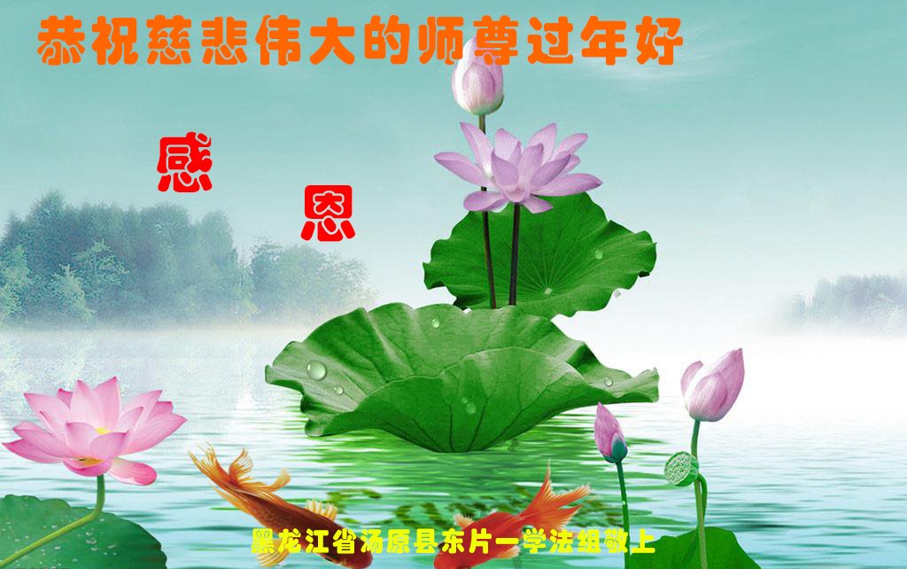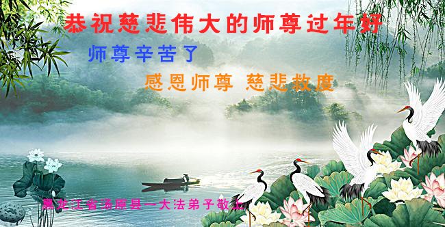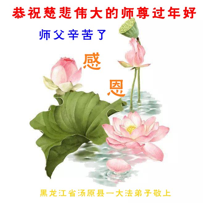 恭祝慈悲伟大的师尊过年好!感恩师父慈悲救度!弟子无法用语言表达对师父感恩的心,只有用精進实修圆容法多去执着,做好三件事。法轮大法好!真善忍好!叩拜师恩! 黑龙江省汤原县一大法弟子敬上 黑龙江省佳木斯市汤原县大法弟子恭祝慈悲伟大的师尊过年好!