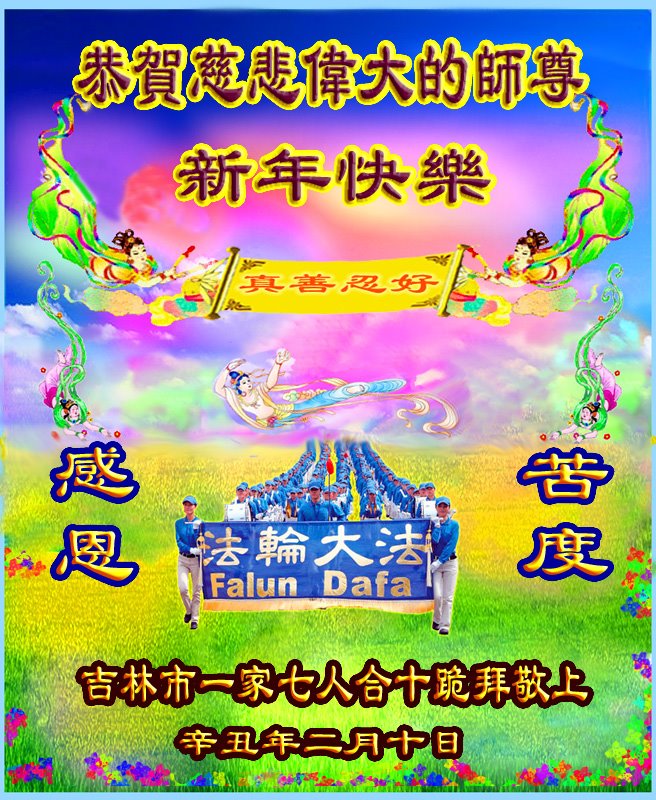 吉林市某大法弟子一家恭祝师尊过年好!感谢师尊的慈悲苦度,师尊您辛苦了! 吉林市四人学法小组大法弟子向慈悲伟大的师尊拜年:恭祝师尊过年好!