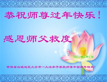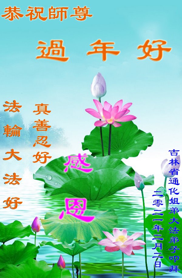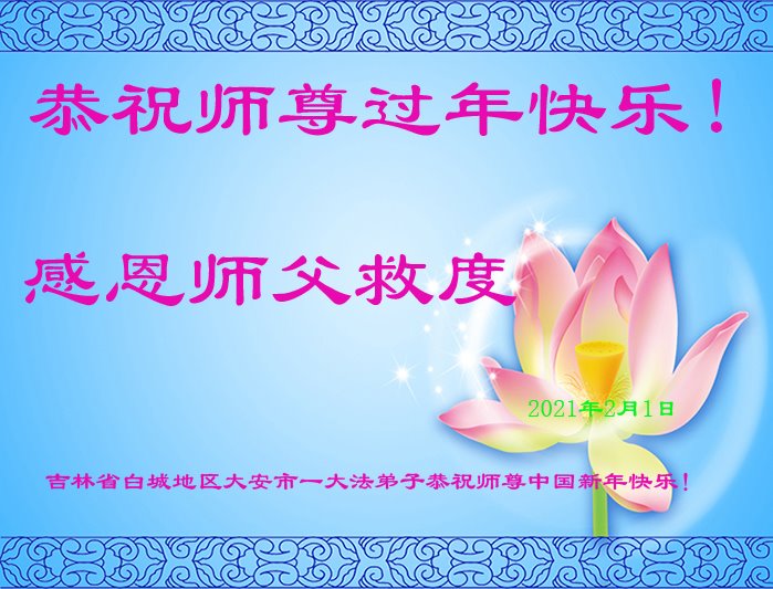 祝师父中国新年快乐!弟子感恩师父救度,弟子在最后的时刻多救人。 2021年2月1日 吉林省白城地区大安市大法弟子恭祝师尊过年好!
