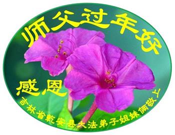 吉林省松原市乾安县大法弟子姐妹俩恭祝师尊过年好!