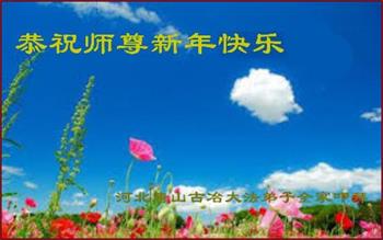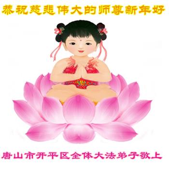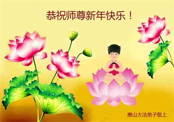 恭祝慈悲伟大的师尊新年快乐! 谢谢师尊一直没有放弃我这个不精進的弟子,每遇到关难的时候,师尊都鼓励我一次次走过去。谢谢师尊。以后我会努力学好法,做好三件事。 河北省唐山古冶区一大法弟子敬上。 河北唐山丰南区大法弟子恭祝师尊新年快乐!