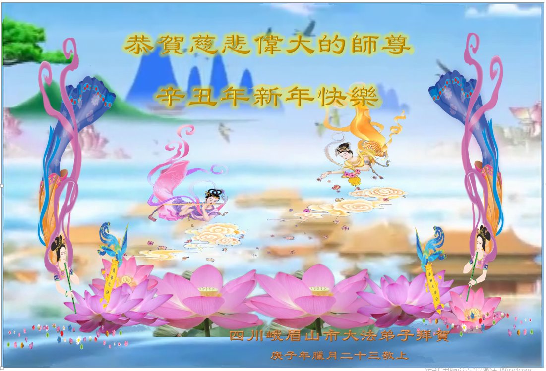 恭祝慈悲伟大的师尊辛丑年新年快乐!感恩师尊的慈悲苦度! 四川峨眉山市大法弟子敬贺! 四川省眉山市全体大法弟子恭祝慈悲伟大的师尊新年快乐!