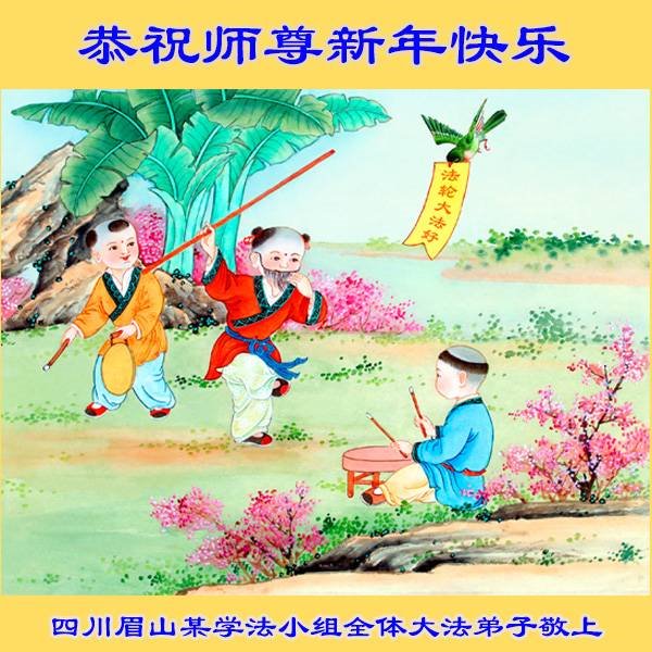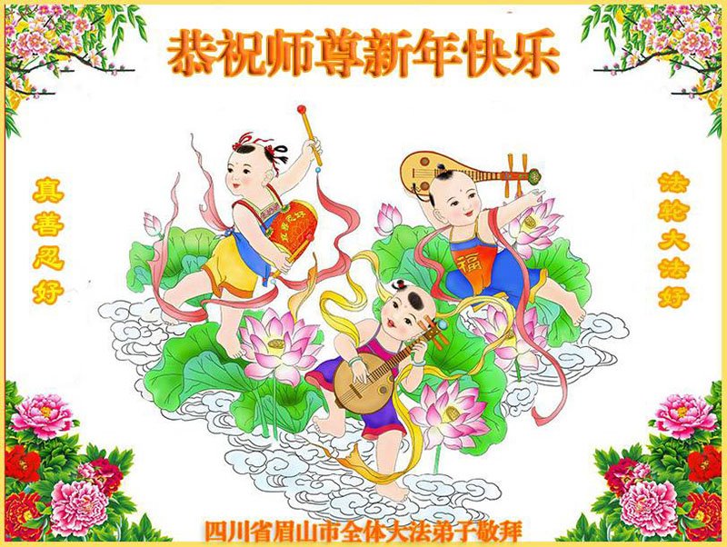 四川省眉山市全体大法弟子敬祝师尊新年快乐!