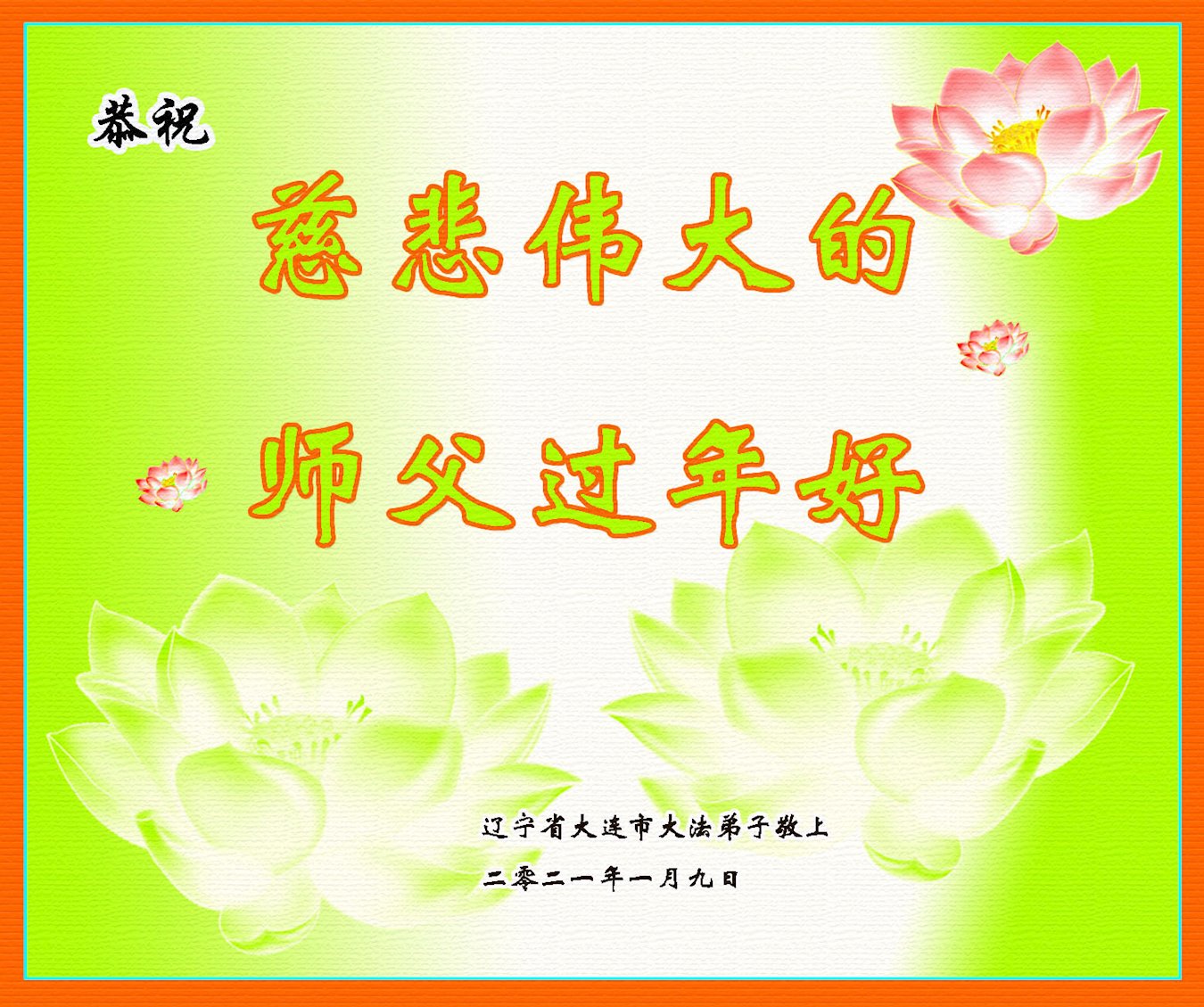 恭祝伟大师尊新年快乐!师父过年好! 大陆大连甘井子一学法小组大法弟子敬上 二零二一年二月四日 辽宁省大连两处学法小组大法弟子恭祝师父新年快乐!