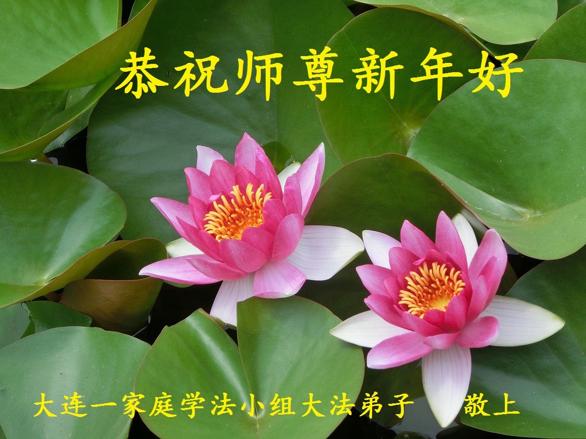 辽宁省大连两个家庭学法小组大法弟子恭祝师尊新年快乐!