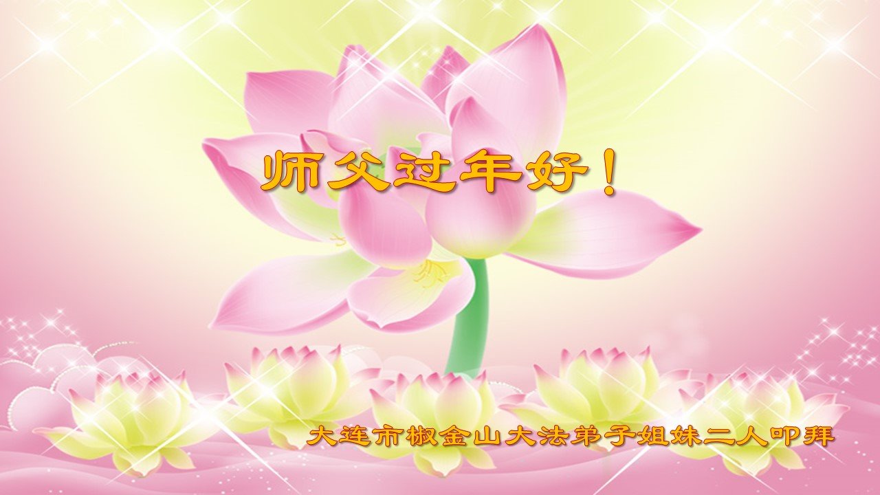 辽宁省大连市椒金山大法弟子姐妹二人恭祝师父过年好!