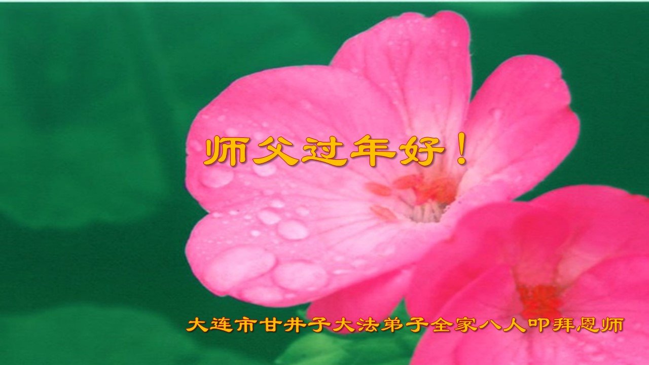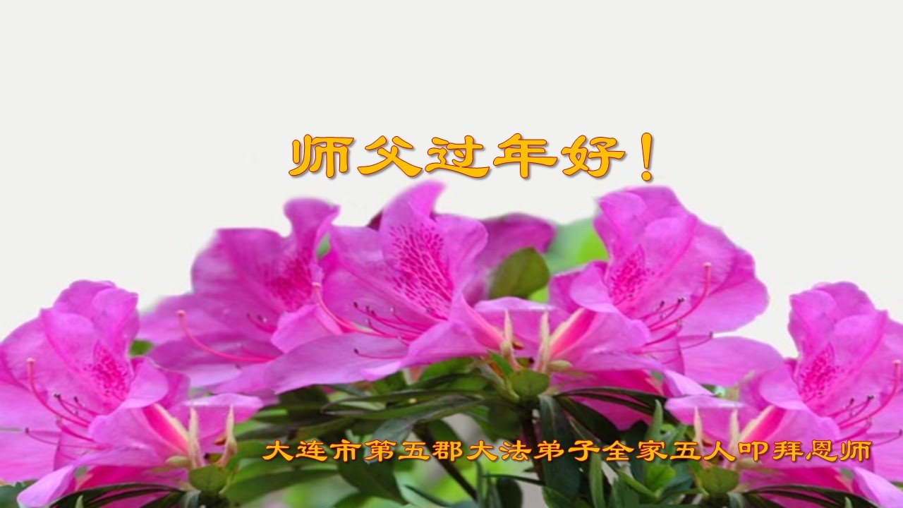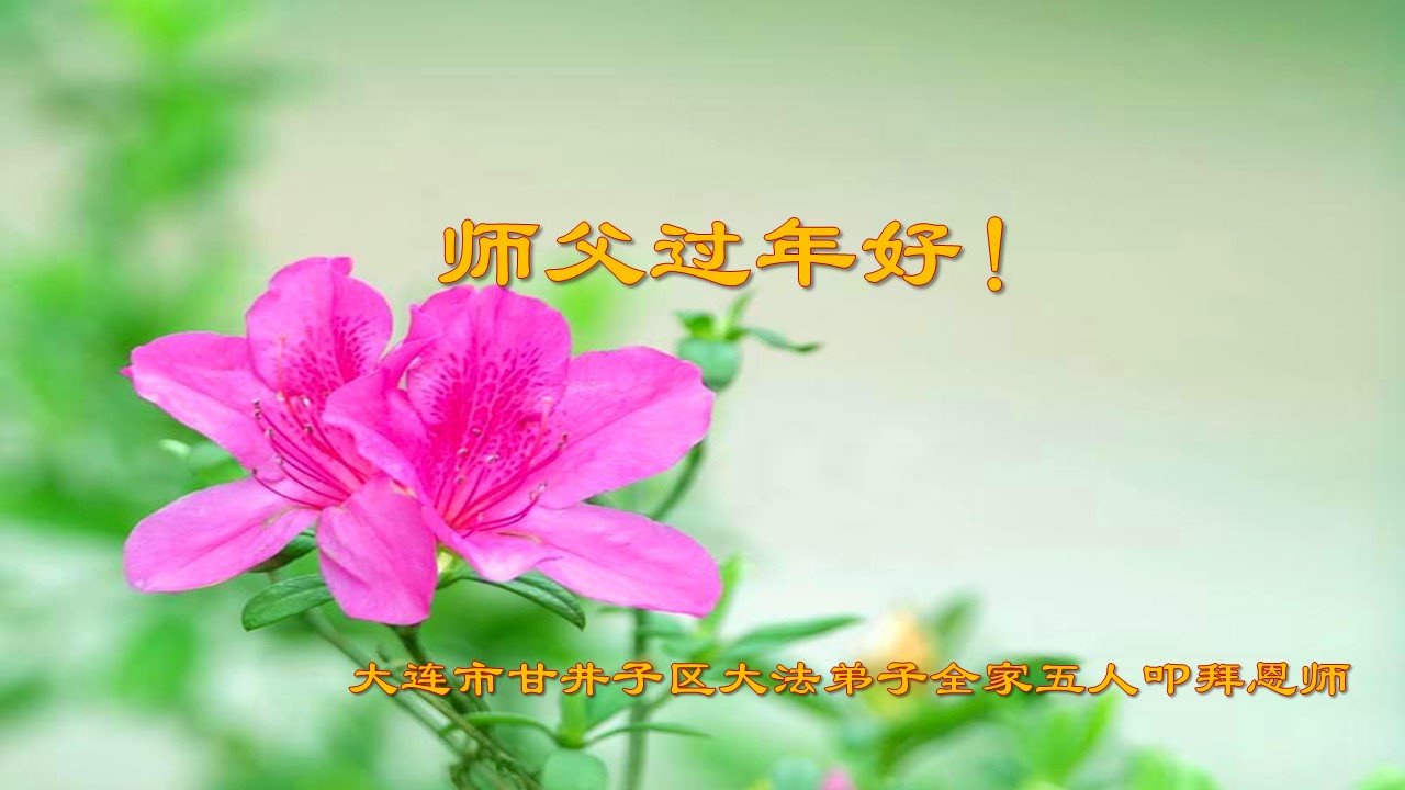 辽宁大连市甘井子区大法弟子全家五人恭祝师父过年好!