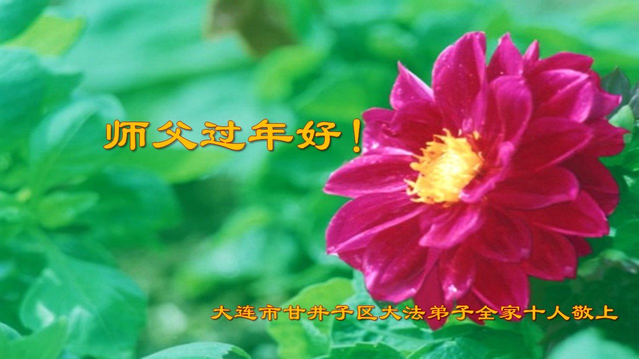 辽宁大连市甘井子区大法弟子全家十人恭祝师父过年好!