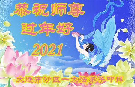 师父过年好!您辛苦了! 光阴如箭,2021年新年即将来临。大连市金普新区七名大法弟子向慈悲伟大的师尊拜年了!师尊过年好!师尊辛苦了!恭祝师尊过年快乐! 弟子们能平稳的走到今天,每一步提高都离不开您的点化,每一次关难都离不了您的看护。更离不开您的慈悲保护。您给予弟子和众生的太多太多。是您把万古不遇的高德大法传给世人,从此也让我们走上了返本归真的路,谢谢师父!弟子们深知时间的珍贵,一定要在最后有限的正法时间里做好三件事,越到最后越精進,不辜负师父的慈悲苦度,不给自己留下遗憾。 再次恭祝师尊新年快乐! 辽宁大连一修炼之家全体大法弟子恭祝师尊新年好!