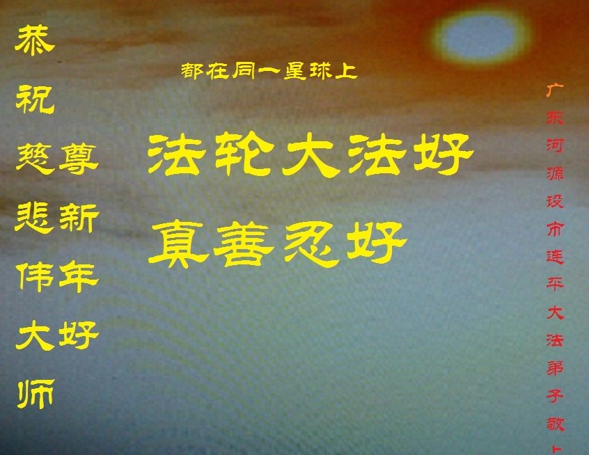 感谢师尊慈悲救度!弟子在新的一年里定不负师尊,不负使命,做好三件事,助师正法,勇猛精進。 汕尾市陆丰地区全体大法弟子敬上 广东省河源全体同修祝师尊新年好!
