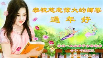过去的一年中,弟子感受到师尊度人的艰辛,真的是不容易! 也感受到了师尊对弟子们的期盼,那无声的呼唤,宏大的慈悲促使弟子们努力做好三件事,修好自己,讲真相救世人,不辜负师尊的期盼! 这么好的法啊弟子学不够,今生能够修炼法轮大法是世上最幸福的事! 广东省中山市大法弟子一家恭祝慈悲伟大的师尊过年好!