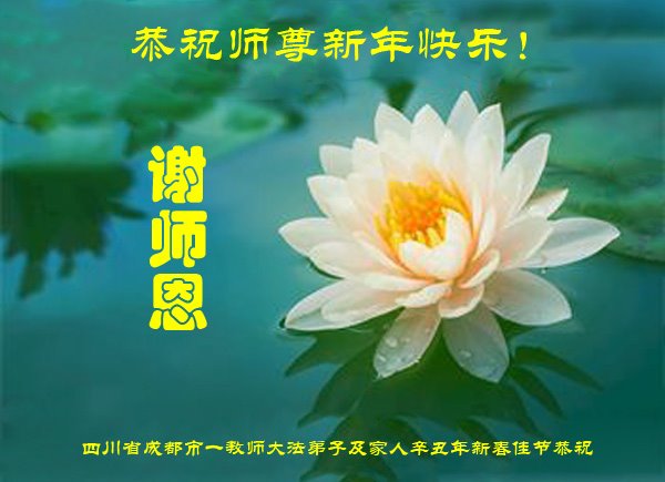 四川省成都市一教师大法弟子及家人恭祝师尊新年快乐!