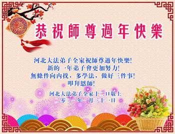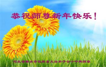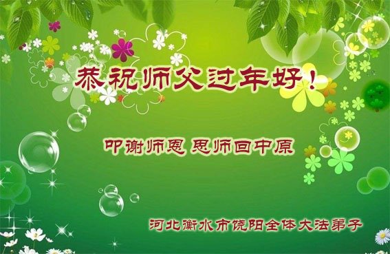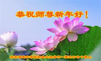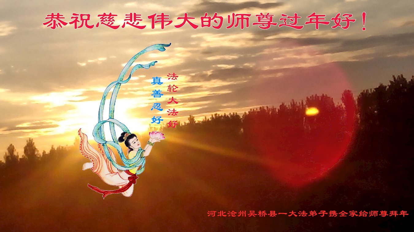 恭祝师父新年快乐! 新的一年,我们要努力精進,紧跟师父正法進程,不辜负师父慈悲苦度。 河北沧州青县一家庭学法小组全家敬上 河北省衡水市枣强县全体大法弟子给师父拜年:恭祝师父过年快乐!