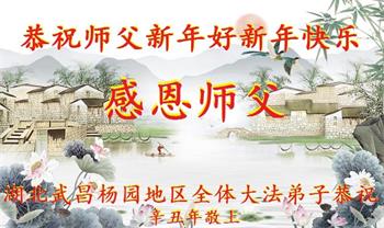 师父新年好! 辛丑年敬上 湖北武昌杨园地区全体大法弟子恭祝师父新年好!