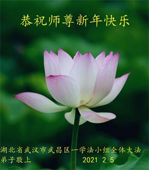 湖北省武汉市武昌区一学法小组大法弟子恭祝师尊新年快乐! 湖北随州大法弟子恭祝师尊过年好!