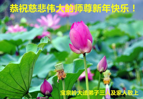 黑龙江省宝泉岭大法弟子三人及家人恭祝师尊新年快乐!
