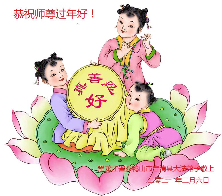 恭祝恩师大年快乐! 黑龙江省七台河市新兴区母女大法弟子敬上 黑龙江省绥化市明水县全体大法弟子恭祝师尊新年快乐!