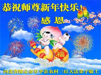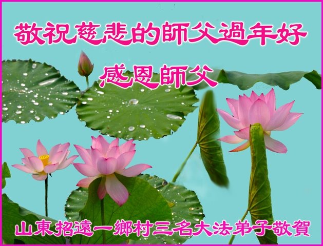 弟子谢谢师父的救度之恩!恭祝慈悲伟大的师父过年好! 山东烟台招远一乡村三名大法弟子敬祝慈悲的师父过年好!