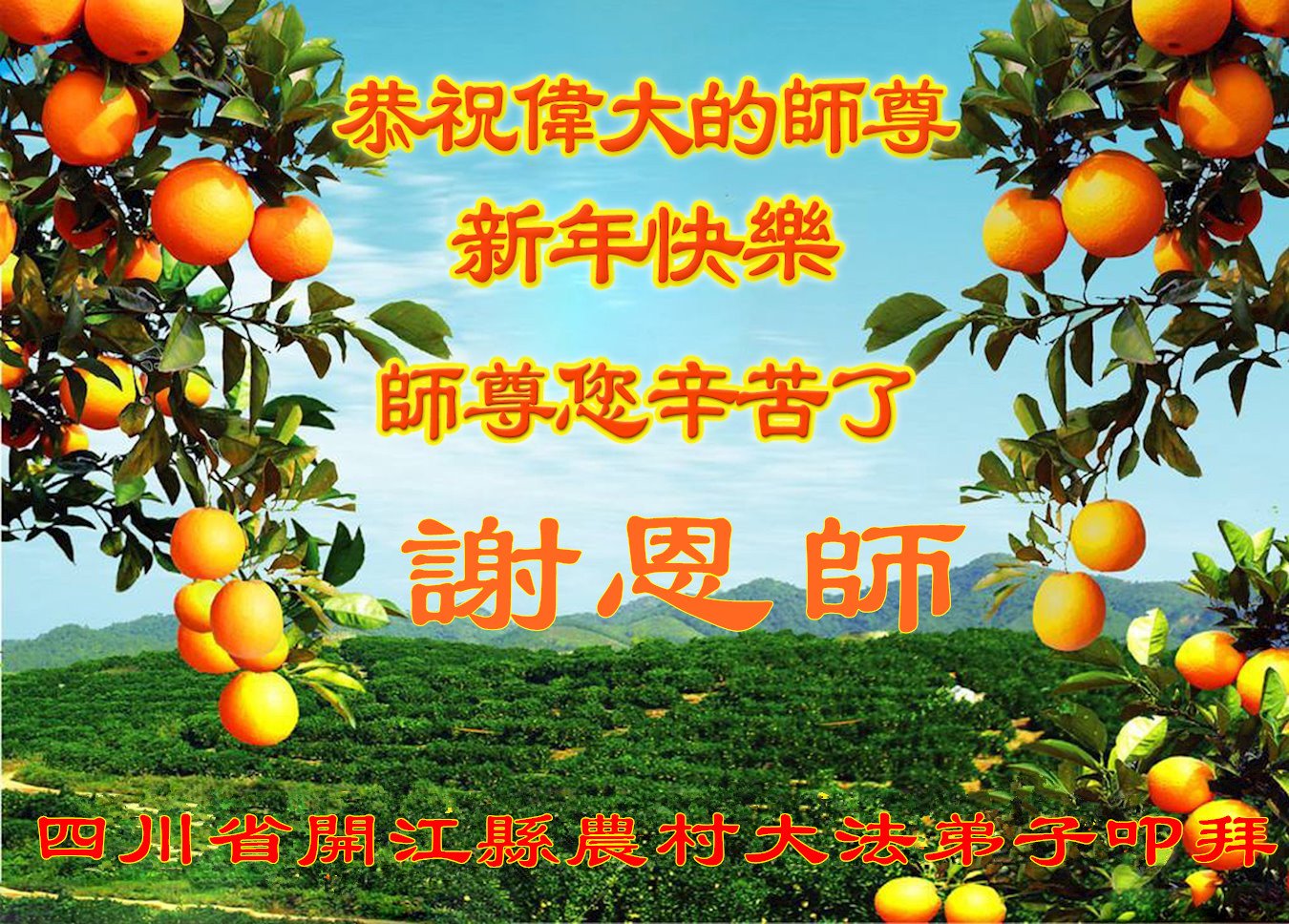 谢谢师父的慈悲苦度!我们一定精進实修,做好三件事,跟师父回家。 四川省达州市开江县农村大法弟子恭祝慈悲伟大的师尊新年快乐!