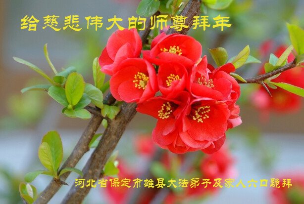 河北省保定市雄县大法弟子及家人六口给师父拜年:恭祝师父新年好!师父新年快乐!