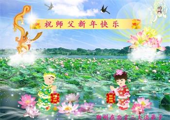 北京大法弟子恭祝师尊过年好! 弟子给您拜年了! 北京大法弟子敬上 北京市一大法弟子恭祝慈悲伟大的师父中国新年快乐!