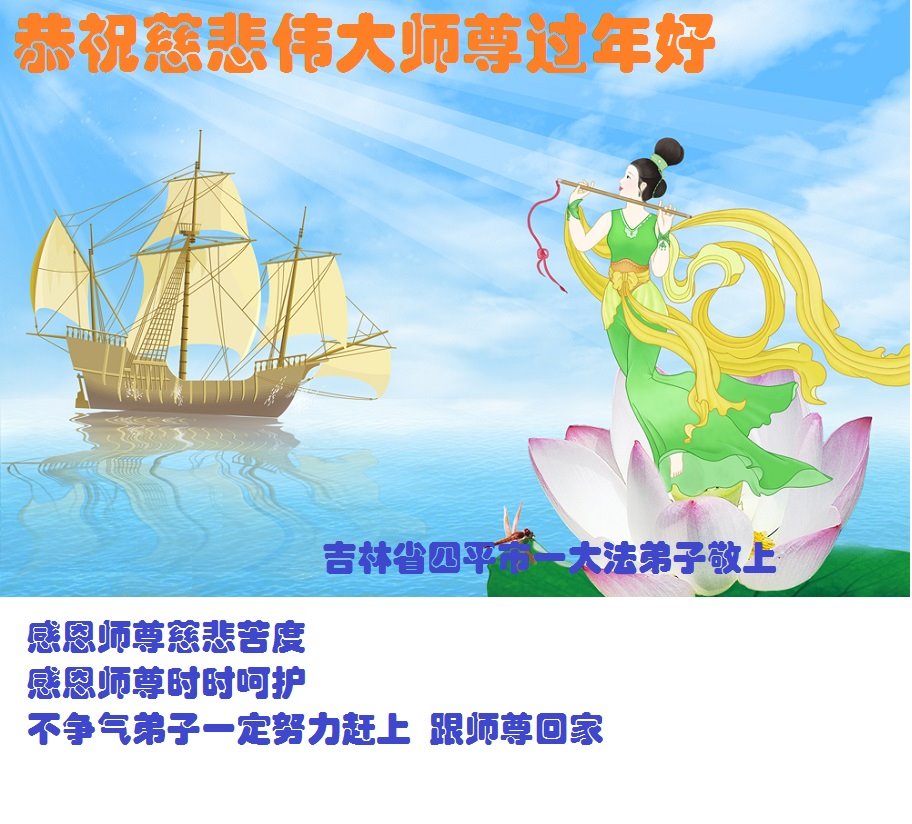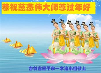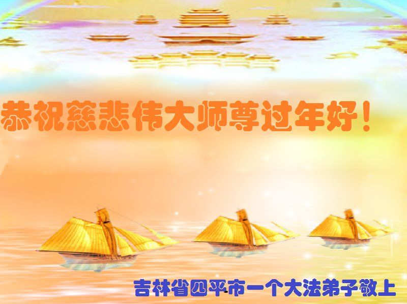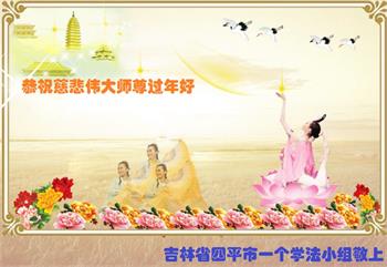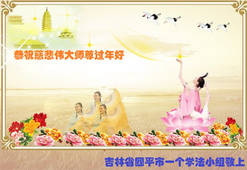 吉林省四平市一学法小组大法弟子敬上 吉林省四平市一大法弟子恭祝慈悲伟大师尊过年好!