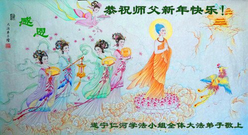 师父辛苦了!我们一定珍惜万古不遇的修炼机缘,特别是最后的正法时间里,好好学法,在法中归正自己。不管形势如何,我们在任何环境下都要坚定修炼,坚定的信师信法。修好自己,多救众生。就是在各种艰难面前,我们都要尽力多救众生,使更多的生命远离灾难,兑现大法弟子的史前誓约,让师父欣慰! 四川省德阳市广汉市一大法弟子恭祝师尊新年快乐!