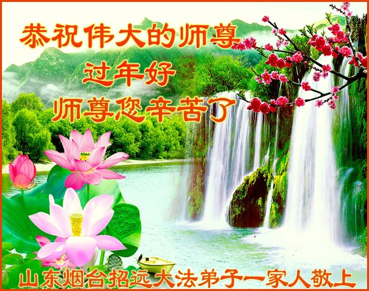 又到年末,新的一年又将开始。辞旧迎新之际,弟子一家人叩拜慈悲伟大的师尊过年好。我们要在师父法理的指导下,去掉情,修出慈悲,跟师父回家。 感恩师尊的慈悲救度!师尊您辛苦了! 山东烟台招远市一大法弟子恭祝师尊过年好!