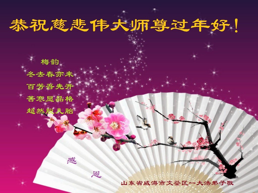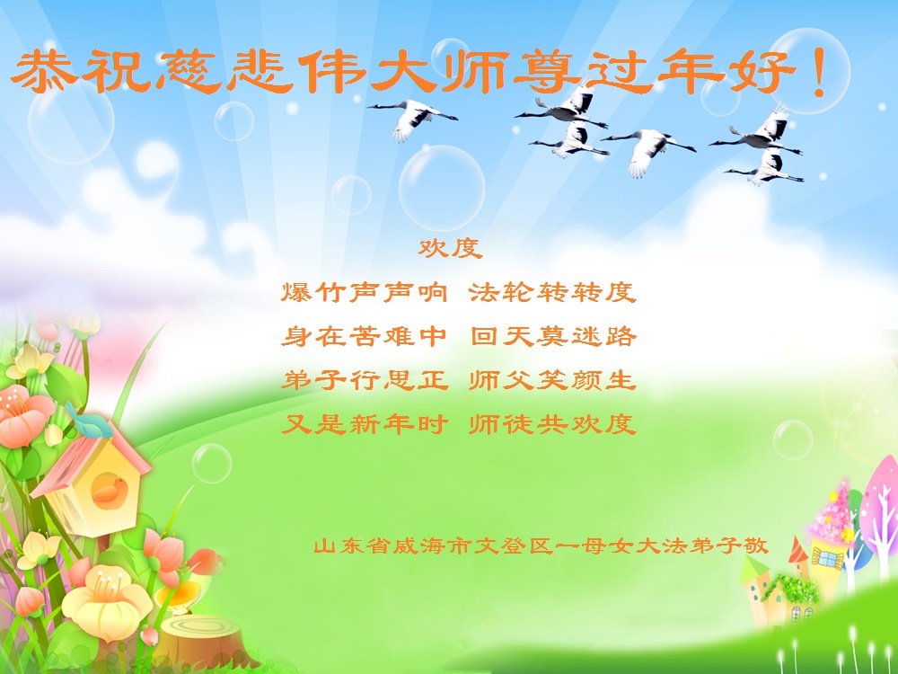 山东省威海市荣成市五位大法弟子恭祝慈悲伟大的师尊新年快乐! 山东省威海市文登区一学法组弟子恭祝师尊过年好!