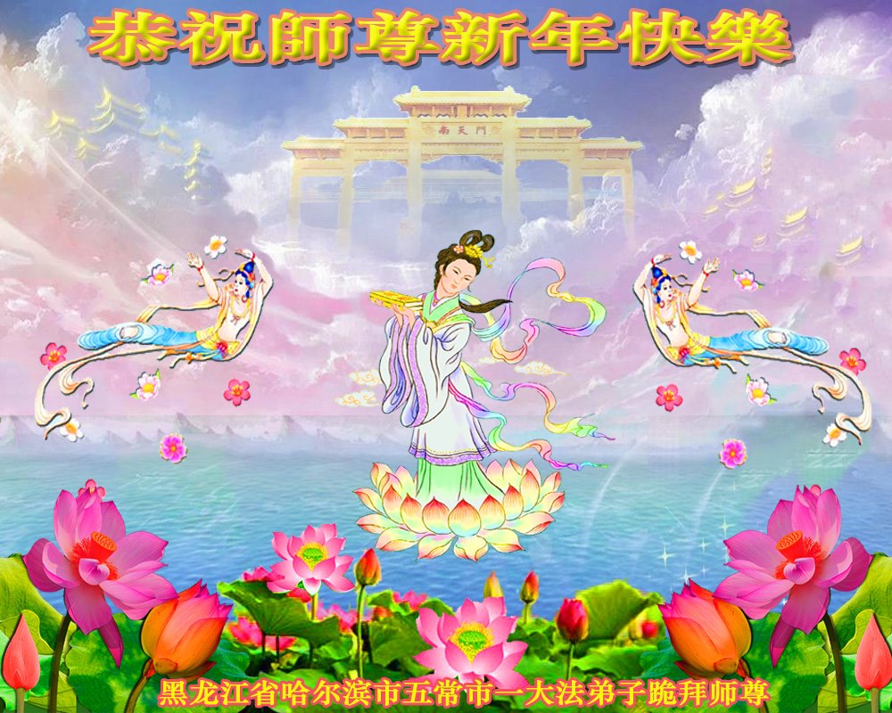 师父过年好!师父辛苦了! 哈尔滨市大法弟子叩拜师尊 黑龙江省哈尔滨市五常市一大法弟子恭祝慈悲伟大的师尊过年好!