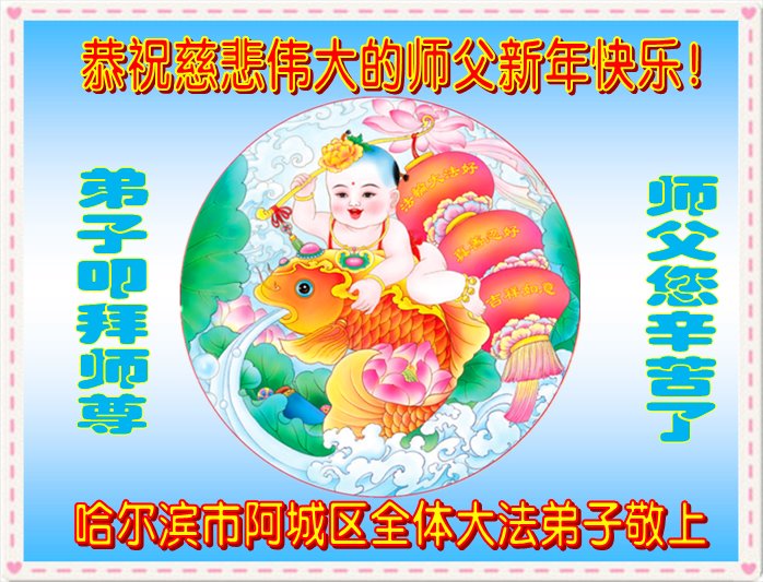 恭祝慈悲伟大的师父过年好! 感恩师父给予我们的一切,用尽人类的语言也无法表达师父您的伟大,您的无量慈悲! 千古机缘,一定要珍惜,正法最后时刻修好自己,跟师父助师正法,救度众生。 黑龙江省哈尔滨市阿城区全体大法弟子恭祝慈悲伟大的师父新年快乐!