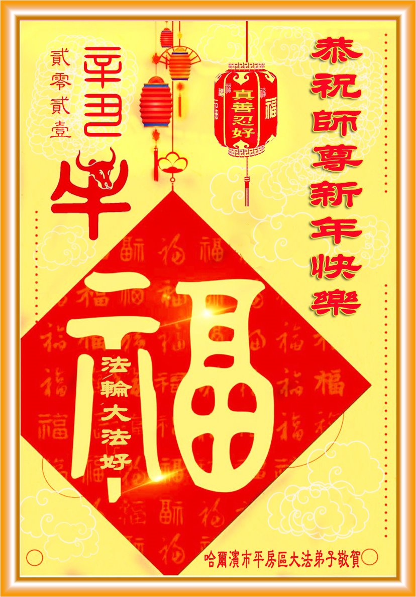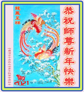 恭祝伟大的师尊新年快乐! 哈尔滨市平房区大法弟子敬贺 二零二一辛丑新年 黑龙江省哈尔滨市平房区大法弟子恭祝伟大的师尊新年快乐!