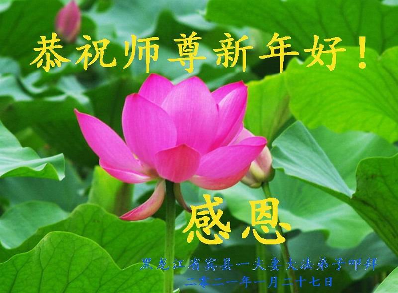 黑龙江省哈尔滨市宾县一夫妻大法弟子恭祝师尊新年快乐!