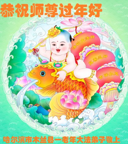 黑龙江省哈尔滨市木兰县一老年大法弟子恭祝慈悲伟大的师尊过年好!